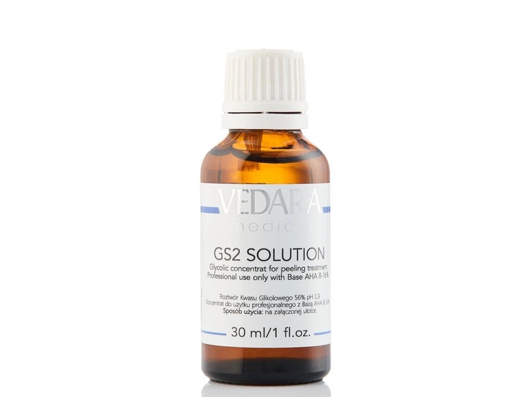 Kwas glikolowy Vedara Medical doskonale sprawdzi się w zabiegach hamujących starzenie skóry i zmniejszających jego objawy. Możemy uzyskać szybki i skuteczny efekt liftingu i poprawy owalu. Wspomaga odnowę i regenerację skóry właściwej poprzez pobudzanie aktywności fibroblastów. Wielokrotne stosowanie kwasu glikolowego ma bardzo korzystne działanie na skórę właściwą prowadząc do zwiększenia jej grubości o 25% (skóra z wiekiem staje się cieńsza) bez wywoływania stanu zapalnego.